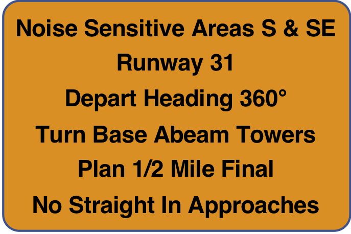 (1) the radio information at the end of AWOS reminding pilots to “follow the Gnoss Field noise abatement procedures and avoid the homes south of the airport” and